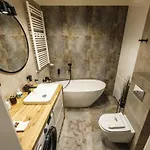 The 44 m^2 Argenti Spa Unia Residence is located in Lublin, a 10-minute ride from exhibition "Majdanek Past and Present" Museum, and boasts a Turkish bath, a Jacuzzi, and a sauna. The apartment provides guests with both modern amenities like Wi-Fi and general facilities such as a lift and a cash machine.